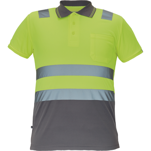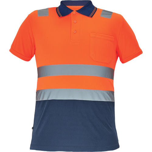 ostrzegawcza koszulka polo z odblaskowymi taśmami o szerokości 5 cm na ramionach i na obwodzie