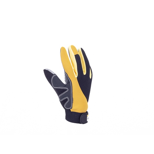 wą warstwą w części chwytnej, ze wzmocnioną częścią chwytną dłoni, delikatną, nylonową tkaniną z boku palców, zapewniającą ich ruchliwość, regulowany mankiet zapinany na rzep.