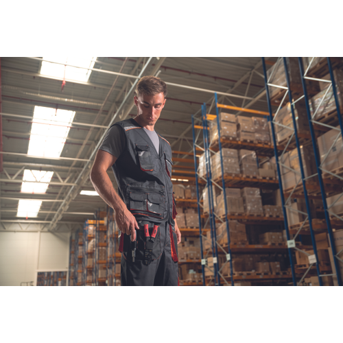 męski bezrękawnik roboczy wykonany z elastycznego i wytrzymałego materiału typu stretch