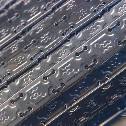 specjalny kształt i rozmieszczenie płytek FLEXINOX uniemożliwiają przebicie się noża z obu stron fartucha