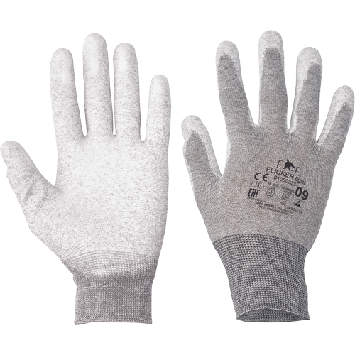dziane, bezszwowe rękawice z poliestru z włóknem węglowym o właściwościach antystatycznych