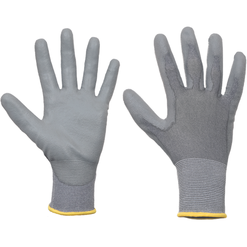 powlekane szarym poliuretanem w części dłonicowej oraz na palcach
