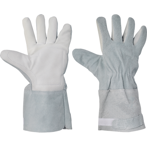 całoskórzane rękawice antywibracyjne wykonane z mieszanki skór bydlęcych: miękkiej licowej oraz dwoinowej