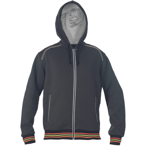 dwuwarstwowy kaptur z zamkiem błyskawicznym i ozdobnym odblaskowym ściegiem łączą funkcjonalność z estetyką