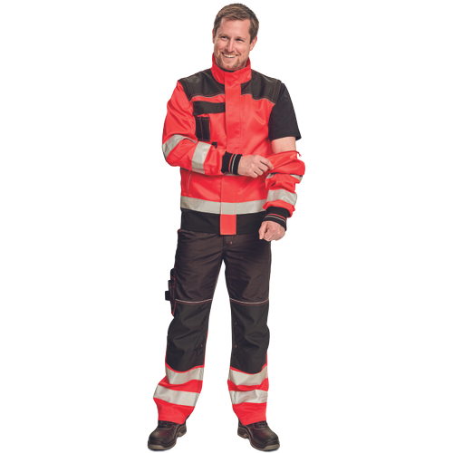 dwie taśmy odblaskowe wokół tułowia i rękawów poprawiają widoczność i bezpieczeństwo