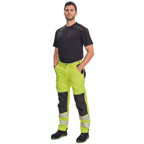 męskie robocze spodnie w wersji hi-vis z elastycznym pasem zapewniającym wygodne dopasowanie