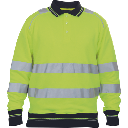 męska bluza polo Hi-Vis z okrągłym dekoltem, wykonana z mieszanki poliestru i bawełny