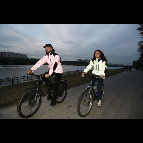 tył kurtki i kieszenie obszyte odblaskowym pipingiem poprawiają widoczność użytkownika