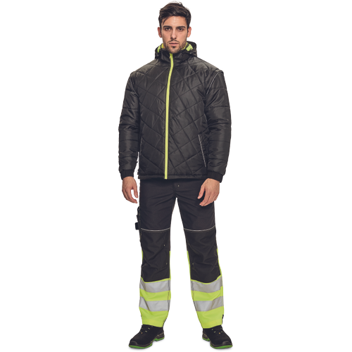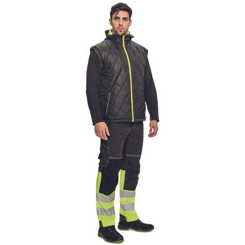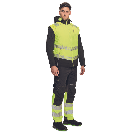 wersja Hi-Vis wyposażona w segmentowe taśmy odblaskowe oraz piping zwiększające widoczność