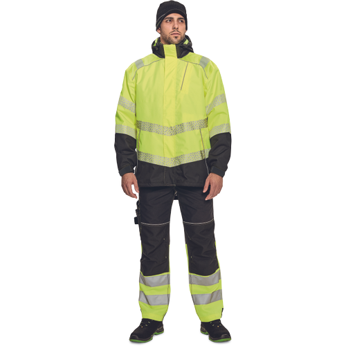 kurtka wyposażona w ocieplinę, odblaskowy piping i segmentowe taśmy odblaskowe zwiększające widoczność i bezpieczeństwo