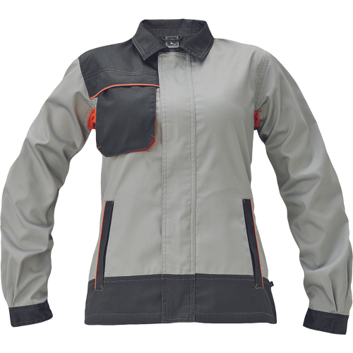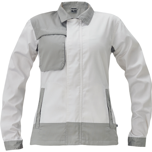 damska kurtka robocza z lekkiej mieszanki bawełniano-poliestrowej (60 % bawełna, 40 % poliester), dedykowana do prania przemysłowego zgodnie z normą EN 15797
