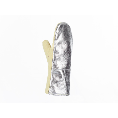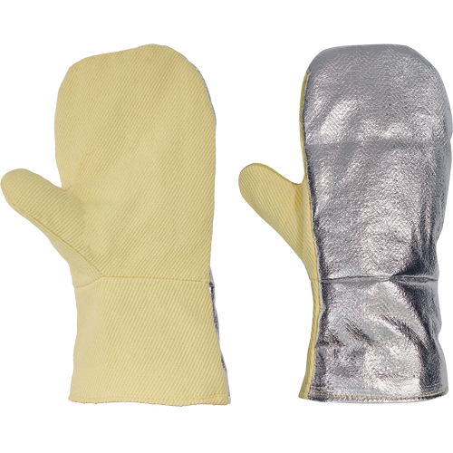 jednopalcowe, dwuwarstwowe rękawice ochronne wykonane z aramidu, aluminizowane od zewnętrznej strony dłoni