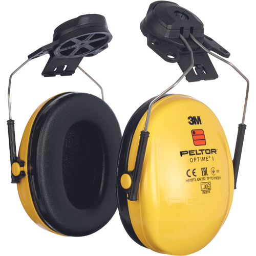 lekkie, żółte nauszniki przeciwhałasowe mocowane do kasku ochronnego
