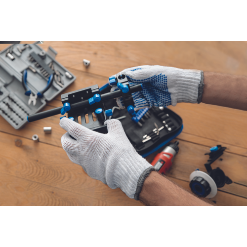 dziane, bezszwowe rękawice ochronne wykonane z mieszanki poliestru i bawełny