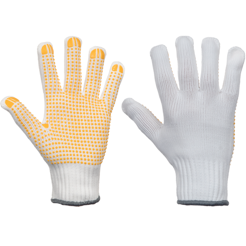 dziane, bezszwowe rękawice ochronne wykonane z mieszanki nylonu i włókna szklanego