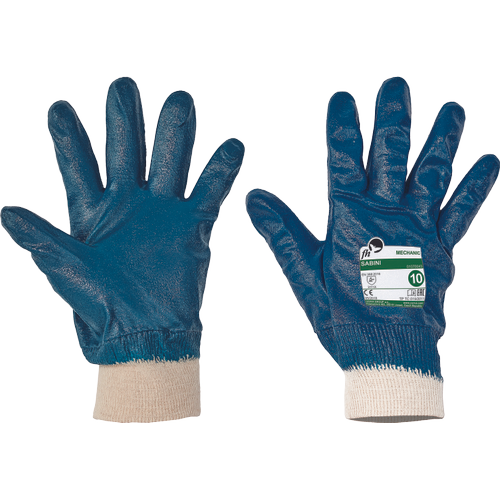 rękawice szyte z bawełnianej dzianiny, powlekane w całości nitrylem o właściwościach antypoślizgowych
