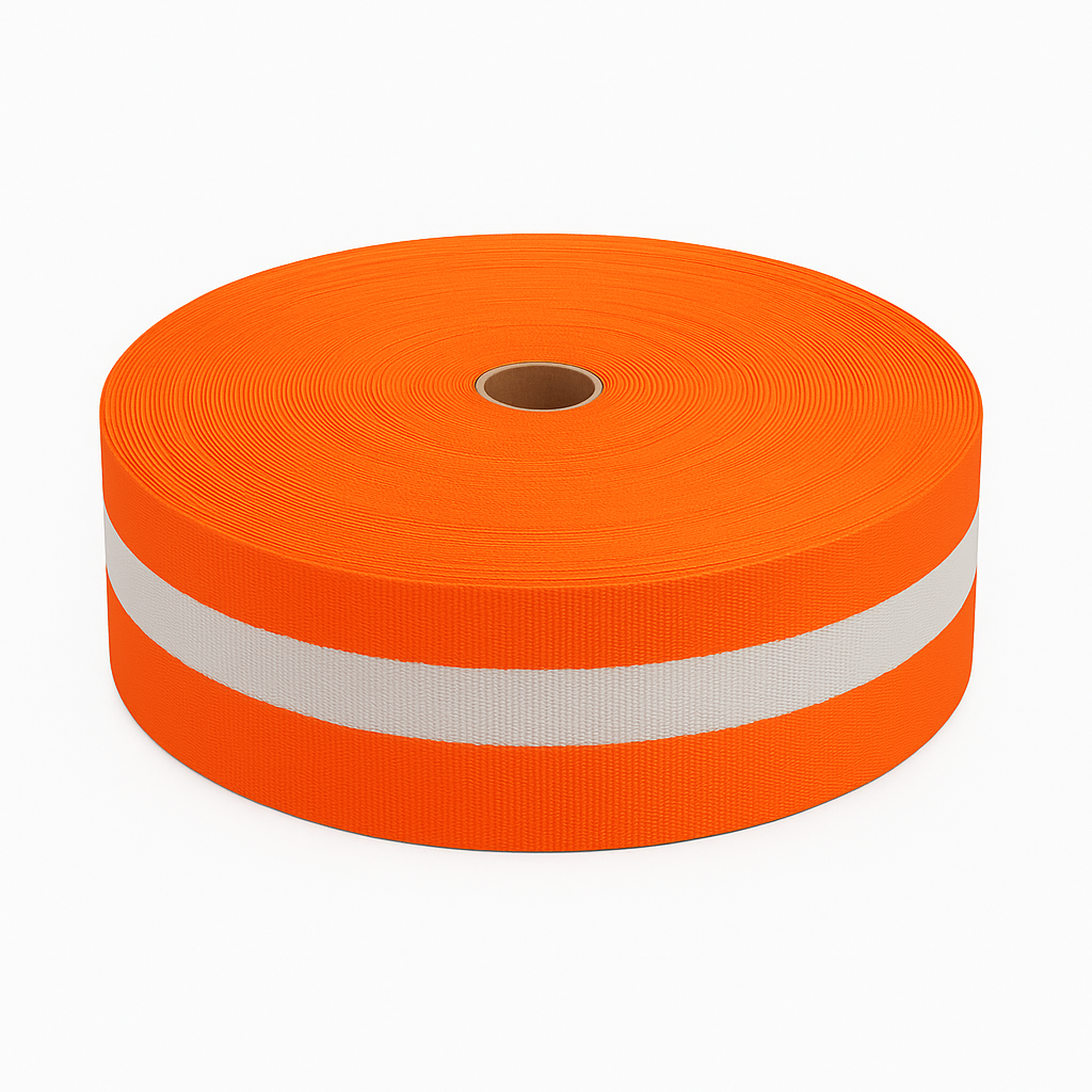 Taśma ostrzegawcza materiałowa pomarańczowo-biała 100m dwustronna neonowa