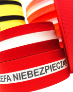 taśma ostrzegawcza pomarańczowo-biała (fluorescencyjny pomarańczowy) przeznaczona do oznaczania miejsc niebezpiecznych lub oddzielania przestrzeni podczas wydarzeń masowych