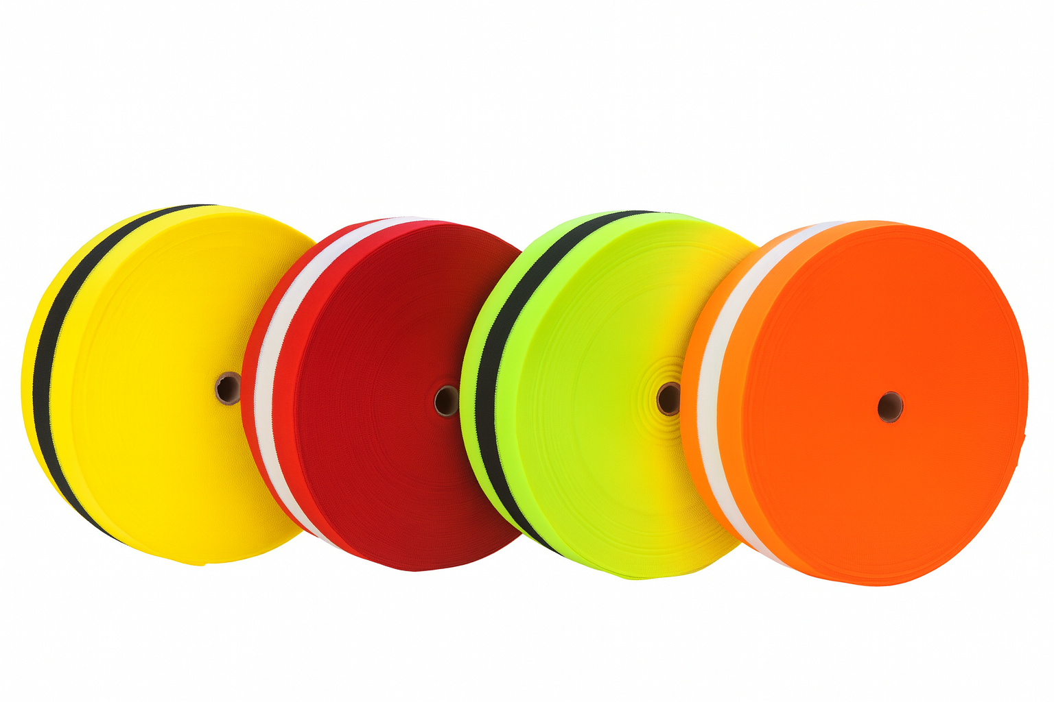 Taśma ostrzegawcza materiałowa żółto-czarna 100m dwustronna neonowa