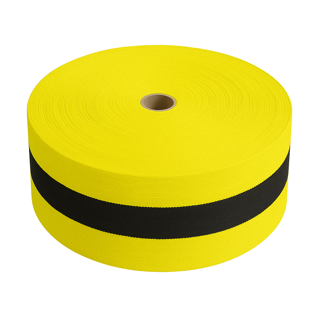 Taśma ostrzegawcza materiałowa żółto-czarna 100m dwustronna neonowa