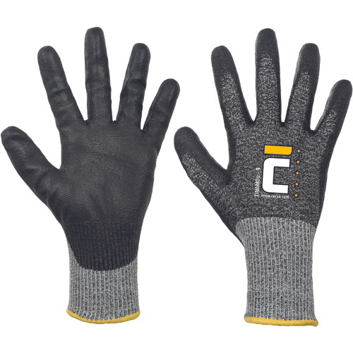 powlekana czarnym poliuretanem w części dłonicowej i na palcach