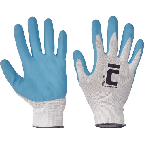 warstwa mikroporowatego, paroprzepuszczalnego nitrylu w części chwytnej dłoni i na palcach