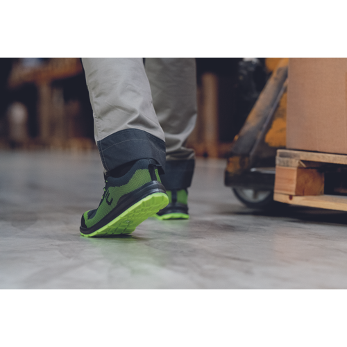 produkt w postaci lekkiego obuwia bezpiecznego o nowoczesnym, sportowym designie, dostępnego w kilku kolorach